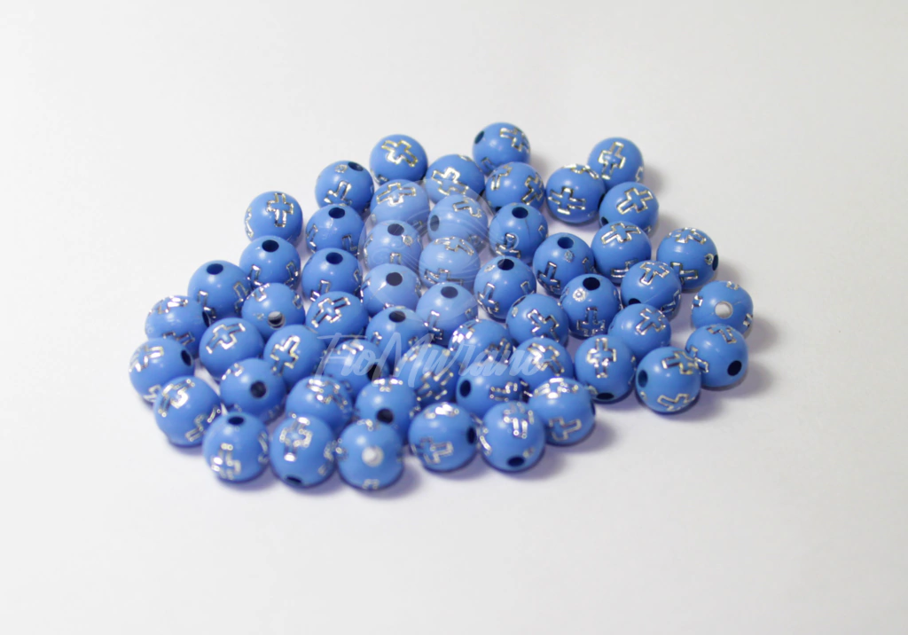 Bola com Cruz 8mm - Azul Claro com Prata